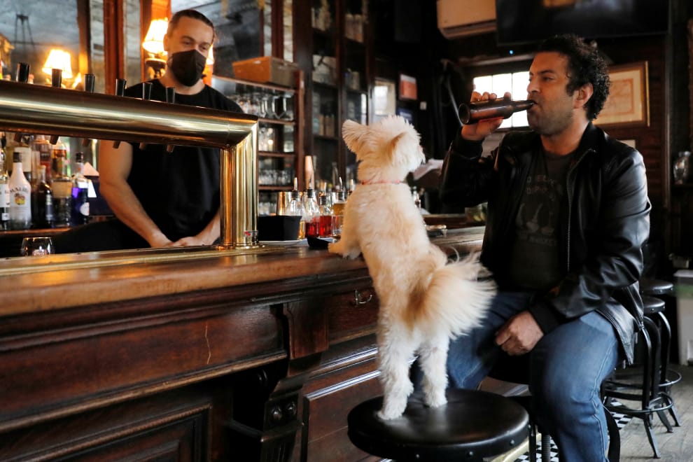 在美國紐約市中心曼哈頓,3號這天,弗里德蘭德(Matt Friedlander,右)便帶著他 5歲的狗狗莎莉(Sally)走進白馬酒館(White Horse Tavern)裡喝一杯。
