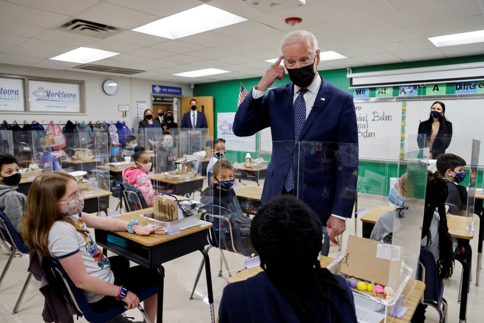 在美國維吉尼亞州的約克鎮(Yorktown),美國總統拜登(Joe Biden)親自走進約克鎮小學(Yorktown Elementary School)與孩子們見面。