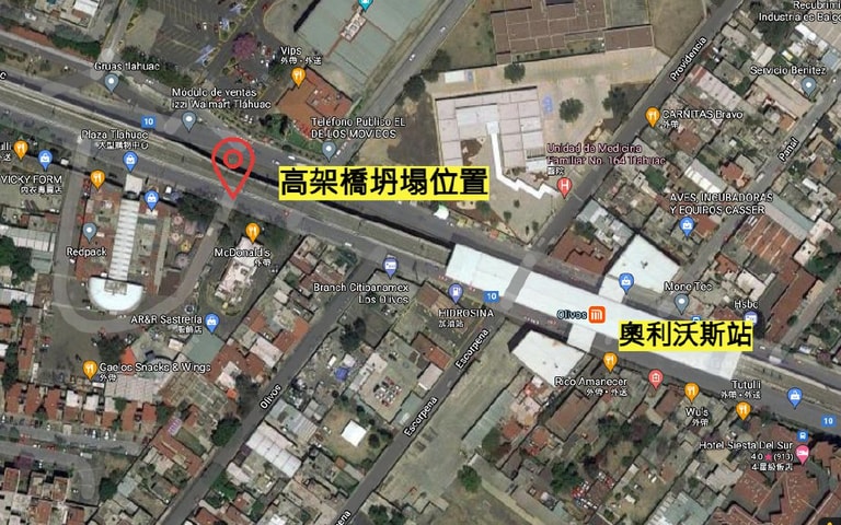 周一(3)晚間 10點25分,墨西哥首都墨西哥城(Mexico City)東南方的捷運奧利沃斯站(Olivos station)外發生高架橋坍塌事件,行經在上頭的列車因此跟著掉落地面,造成上百人死傷。