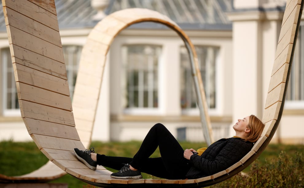 在英國首都倫敦的皇家植物園(Kew Gardens),植物的秘密世界節(Secret World of Plants festival)的訪客計畫經理索萊基(Kate Solecki)躺在設計師科克斯基(Paul Cocksedge)設計的作品《請入座》(Please Be Seated)上拍照。