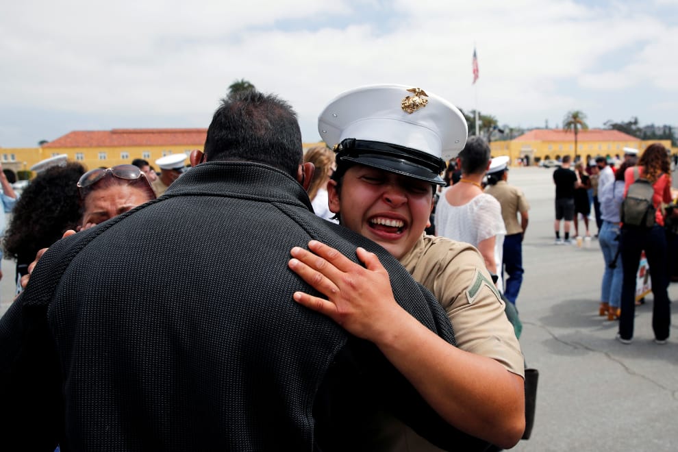 在美國加州的聖地牙哥市(San Diego),剛結業的海軍陸戰隊員帕拉(Ann Parra),興奮地上前擁抱她的父親埃佛蘭恩(Efrain)。在結業的同時,帕拉和她的同袍也寫下新猷,成為百年來首批自美國海軍陸戰隊聖地牙哥訓練所(Marine Corps Recruiting Depot San Diego)結業的女陸戰隊員。