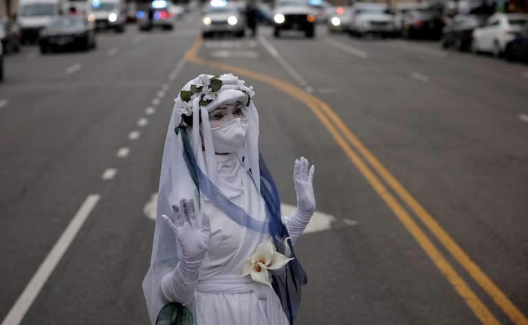 美國—馬路中央白衣人