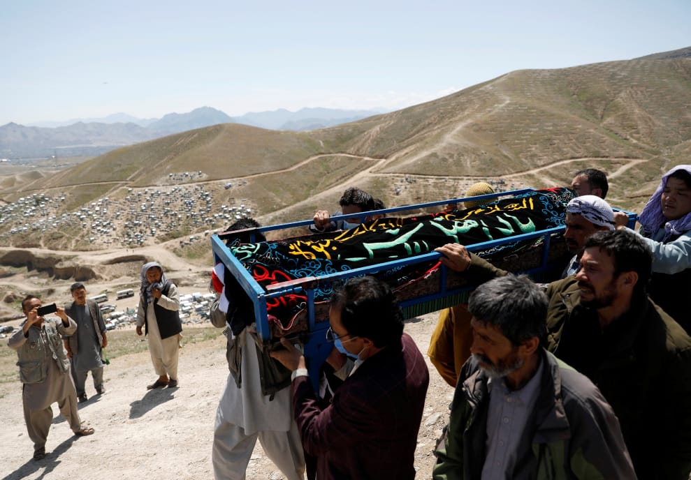在阿富汗首都喀布爾(Kabul),上周六(8)這裡接連發生多起爆炸案,總共導致 68人死亡、165人受傷。案發後,部分受害者家屬們一起舉辦了聯合喪禮,男人們扛著其中一名受害者的遺體,緩緩朝著葬禮現場前進。