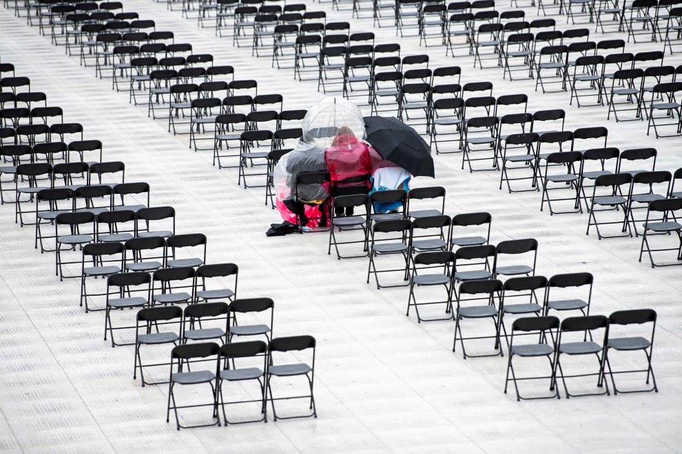 在美國俄亥俄州哥倫布市,俄亥俄州立大學(Ohio State University)在這天於俄亥俄體育場(Ohio Stadium)內舉辦畢業典禮,但不巧當天飄起綿綿細雨,一名畢業生的家人只好在空蕩蕩的會場內打起雨傘避雨。