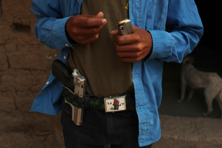 現在,15歲的莫拉雷斯早已是用槍老手,只見他熟練地在記者面前裝卸子彈,他也是村裡唯一和父親一起輪班看守村莊出入口的男孩。