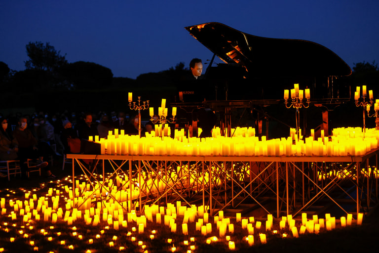 在義大利首都羅馬的亞壁古道(Appia Antica)考古公園,鋼琴家卡利法諾(Giuseppe Califano)在此舉辦了一場燭光音樂會。