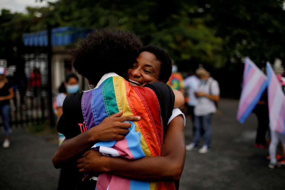5月17日是國際不再恐同日,在薩爾瓦多的首都聖薩爾瓦多(San Salvador),一些來自LGBTQ+社群的人們舉辦了一場紀念這個日子的集會,其中兩人於活動上緊緊相擁。