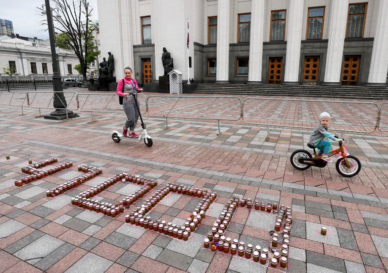 在首都基輔(Kyiv),抗議民眾在議會大樓前用蠟燭排出了「47000」字樣,象徵因COVID-19(武漢肺炎)而死去的 4萬7,000位烏克蘭人民,他們以此行動要求衛生部長斯捷潘諾夫(Maksym Stepanov)辭職下台負責。
