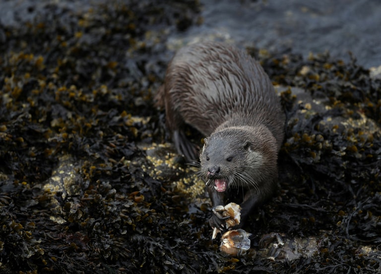 在蘇格蘭的城鎮奧本(Oban),一隻水獺抓著自己剛剛抓到的螃蟹,打算帶回巢穴再好好享用。