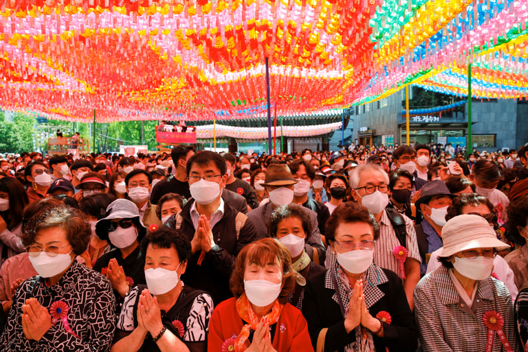 今年的 5月19日為佛誕節。在南韓首爾,一群佛教徒們於曹溪寺內參與了相關的祈福與慶祝活動。