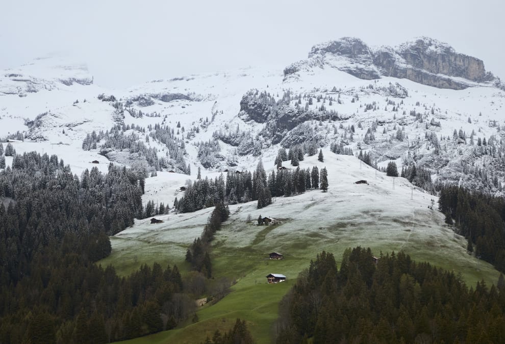 經過了整晚的降雪後,城鎮下奧爾蒙(Ormont-Dessous)的村落之一路賽佩(Le Sepey)被染成了大片的銀白世界。