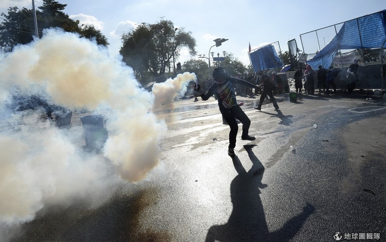 和警方發生衝突的民眾丟擲催淚瓦斯