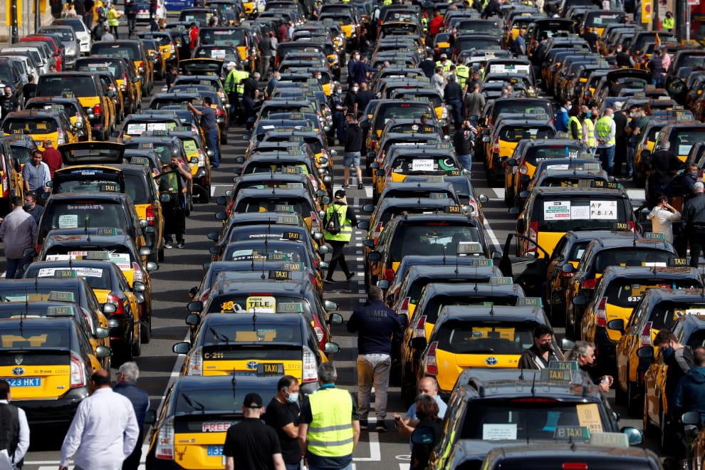 在巴塞隆納(Barcelona),一群不滿Uber及Cabify等線上叫車服務法規的計程車司機,在街道上發起了大規模的示威抗議。