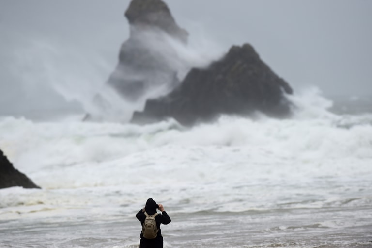 在威爾斯布羅德港(Broad Haven)的海灘,一位民眾將大浪打上教堂岩石(Church Rock)的驚人景象,用自己的手機給紀錄了下來。
