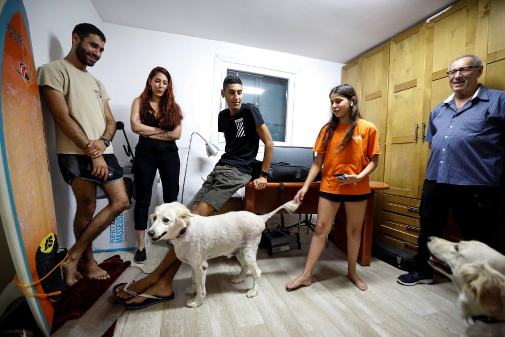 在以色列,一枚飛彈自加薩走廊射向了城市雅實基倫(Ashkelon)。當空襲警報響起時,一個以色列家庭帶著自家的狗一起躲到了防空避難所裡頭。