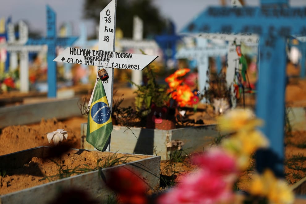 在亞馬遜州(Amazonas)的首府瑪瑙斯(Manaus),墓園「Parque Taruma」容納了許多因COVID-19(武漢肺炎)而不幸逝世的死者。而在其中一個墓地裡,一面巴西國旗靜靜地垂掛在了十字架上頭。