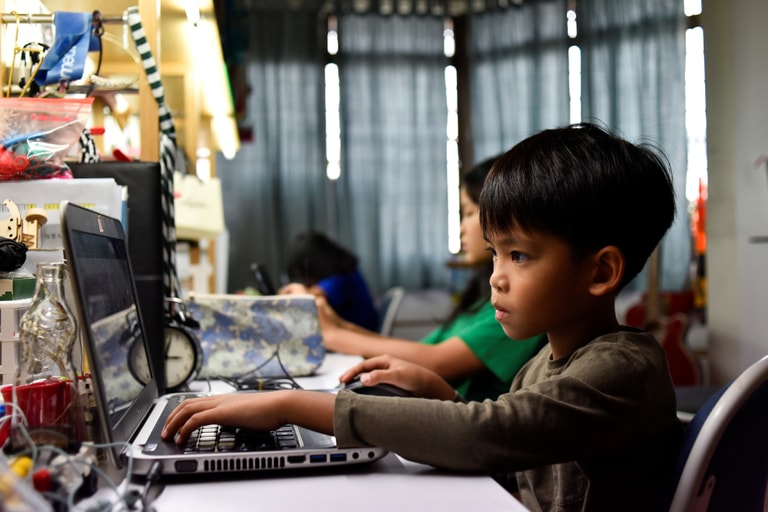 在新加坡,因為COVID-19(武漢肺炎)疫情升溫的緣故,學校被迫暫時關閉。畫面中,一名八歲的孩子正透過電腦進行線上課程。