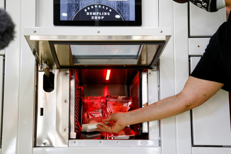 除此之外,這些食物櫃還有溫控功能,發出藍光的放冷飲、紅光的則是餃子,所以也不用擔心太晚領取會讓食物沒了新鮮的滋味。