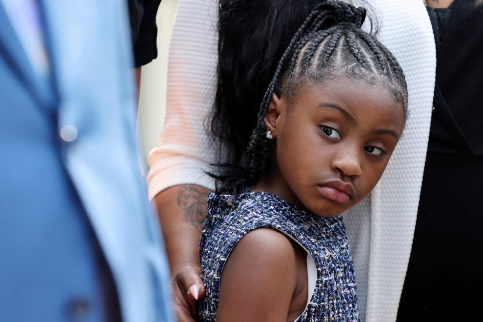 畫面中的小女孩為佛洛伊德的女兒吉安娜·佛洛伊德(Gianna Floyd),她和其他家人在與總統拜登會談後,接受了記者的採訪。