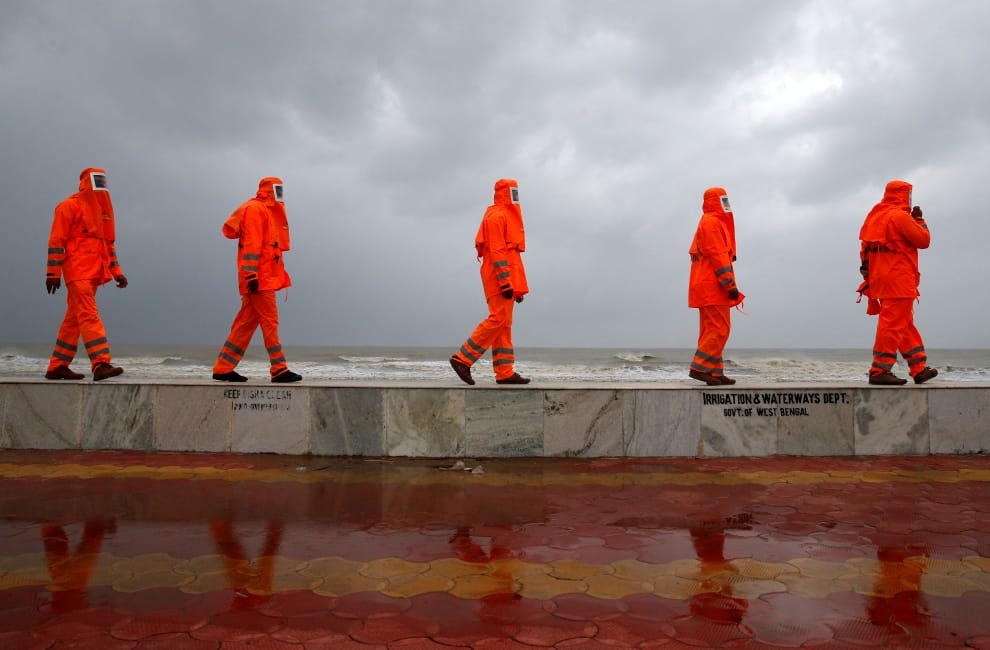 在東部的西孟加拉邦(West Bengal)的普爾巴-梅迪尼普爾地區(Purba Medinipur district),幾名來自印度國家災難響應部隊(NDRF)的軍人正在海邊沿岸巡視,準備迎接即將到來的強力氣旋亞斯(Cyclone Yaas)。