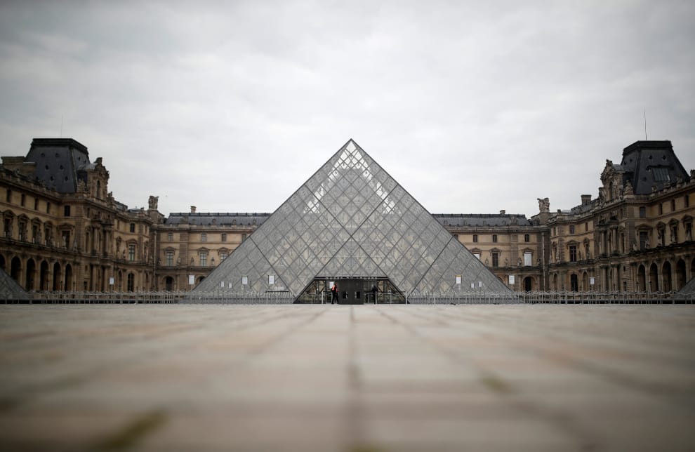 在去年三月法國封城時期,巴黎羅浮宮也遭到封鎖,過往大排長龍的入口前空無一人。