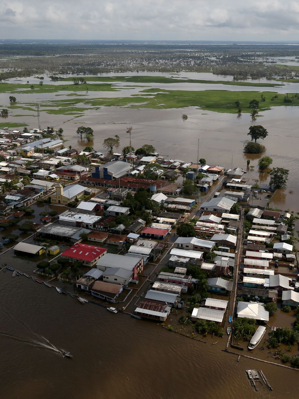 在亞馬遜州(Amazonas State),由於鄰近的蘇里摩希河(Solimoes river)氾濫,城鎮卡雷魯達瓦爾澤阿(Careiro da Varzea)幾乎被淹去了所有的道路,讓房子們都成為了河上的一座座小孤島。