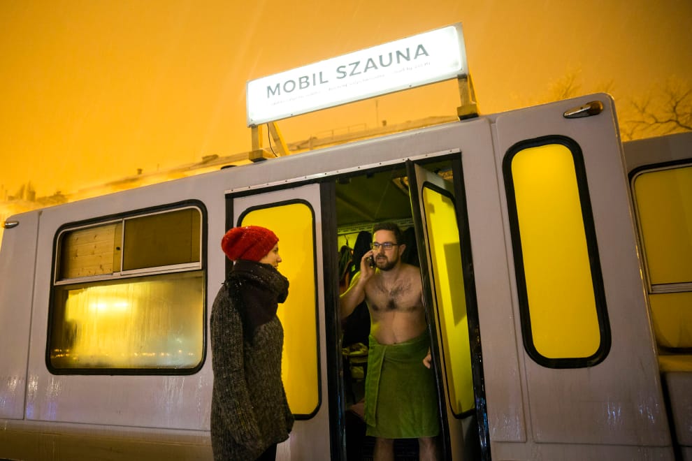 早在 20年前就有研究發現,每天洗熱水浴和桑拿,可以有效改善慢性心力衰竭患者的症狀。圖為匈牙利首都布達佩斯一台「行動桑拿浴」汽車。