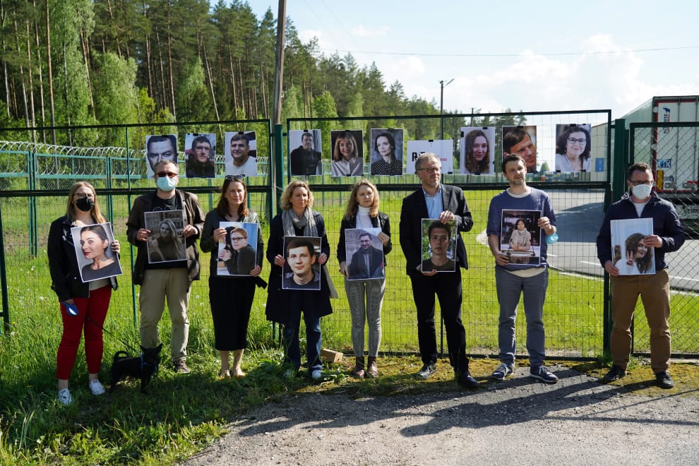 在與白羅斯將壤的城鎮沙爾奇寧凱(Salcininkai),數名非政府組織「無國界記者」(Reporters Sans Frontiers)的成員及當地記者,一起來到了兩國的交界處。這些人手中拿著的照片,都是正遭到白羅斯政府羈押的記者,他們藉此方式抗議白羅斯政府任意逮捕異議者的手段,並呼籲各國政府重視該國侵犯人權的行為。