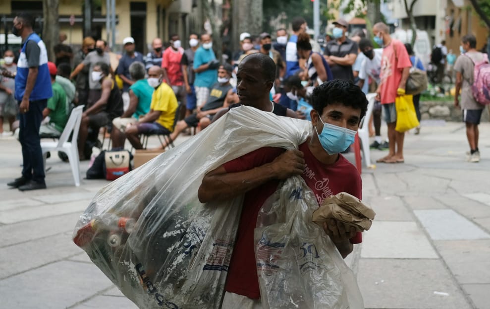 在巴西,當地政府正在推動讓無家可歸的街友也能注射COVID-19(武漢肺炎)疫苗的計畫。本照攝於里約熱內盧(Rio de Janeiro)的下城區,已成為街友 8年的 29歲男子席爾瓦(Madson Ferreira Silva),在施打完阿斯特捷利康疫苗(AstraZeneca,即AZ疫苗)後揹起他的行囊,離開了注射站。