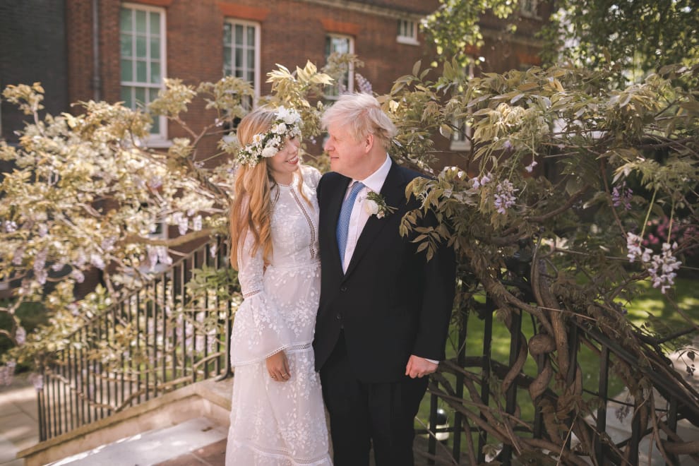 在位於倫敦的英國首相府,英國首相強生(Boris Johnson)和新婚妻子西蒙茲(Carrie Symonds)在花園中留下了這張照片,他們兩人在 29號下午於西敏主教座堂(Westminster Cathedral)完婚,強生也成了英國近兩百年來,首位在任期內結婚的首相。