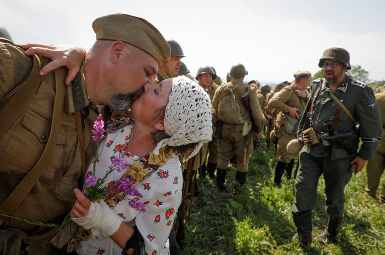 在斯塔夫羅波爾(Stavropol)的萊蒙托夫小鎮(Lermontov),軍事歷史迷穿上了二戰時期的蘇聯軍服,再現了當時著名的高加索戰役。