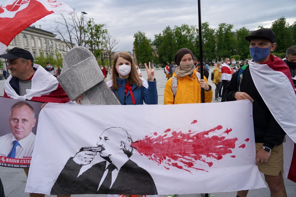 在「白羅斯支持日」(Belarus support day)這一天,民眾在首都維爾紐斯遊行,他們手拿抗議白羅斯總統盧卡申科(Alexander Lukashenko)的海報和布條,譴責他迫害白羅斯異議記者普羅塔賽維奇(Roman Protasevich)的行徑。