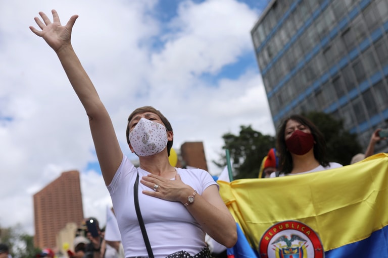 不過另一方面,哥倫比亞也出現了希望抗議能夠停止的聲音。上周日,在首都波哥大(Bogotá)街頭就出現了一群穿著白衣、揮舞國旗的人,他們要求終止抗議、撤掉路障,並表達對安全部隊的支持。