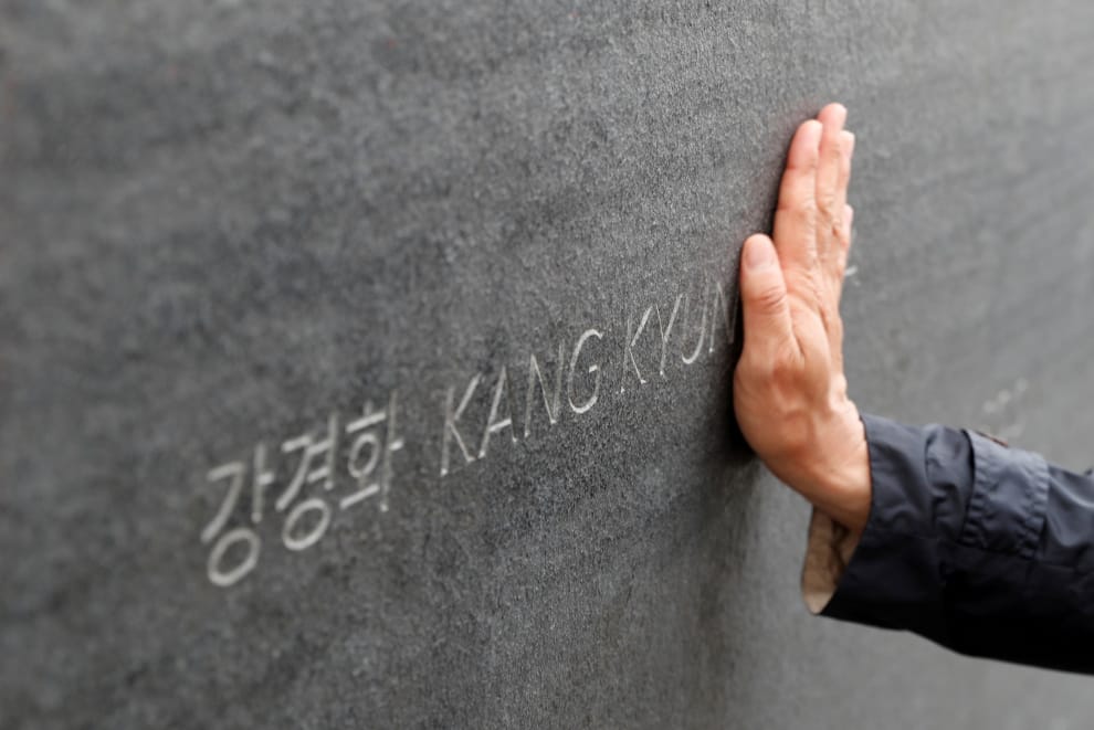 在首都布達佩斯的瑪格麗特橋(Margaret bridge)旁,人們摸著紀念碑上船難遇害者的名字,希望他們在天之靈能夠安息。