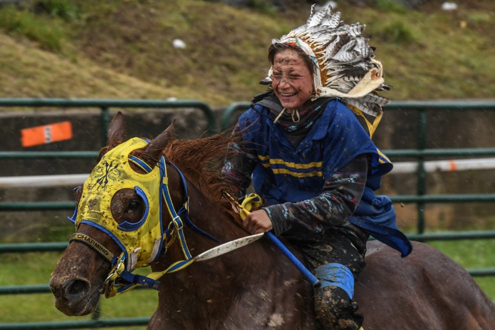 在奧克拉荷馬州的帕烏胡斯卡市(Pawhuska),來自全美各地的原住民齊聚一堂參加印第安接力大賽,其中有多項展現騎術的比賽。