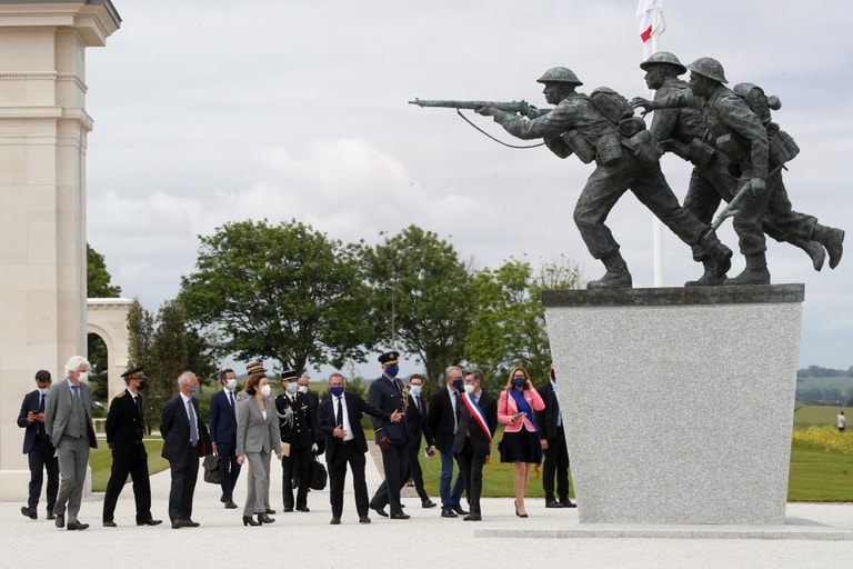 適逢諾曼第登陸日(D-Day)滿 77周年,英國駐法大使黎偉略男爵(Lord Edward Llewellyn)和法國國防部長帕爾麗(Florence Parly)一起來到位於濱海韋爾(Ver-sur-Mer)的英國諾曼第紀念雕像前悼念。