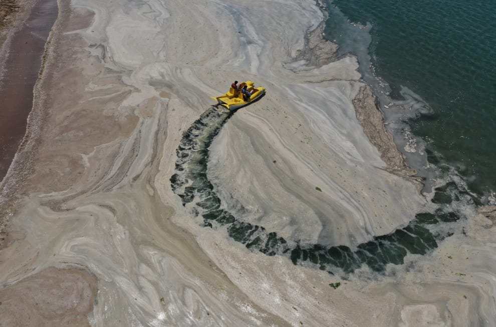 在土耳其大城伊斯坦堡的海邊,大量被暱稱為「海鼻涕」的海洋黏液覆蓋了馬摩拉海(Sea of Marmara),並進一步對周遭的海洋生態、漁業產生威脅。