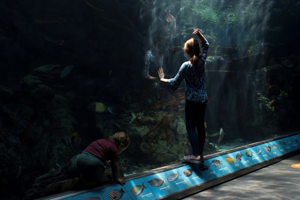 在美國加州長灘市(Long Beach)的太平洋水族館(Aquarium of the Pacific)內,8歲的小女孩維科林(Jane Vicoreen)趴在水族箱上,看著裡頭的魚兒四處悠游。