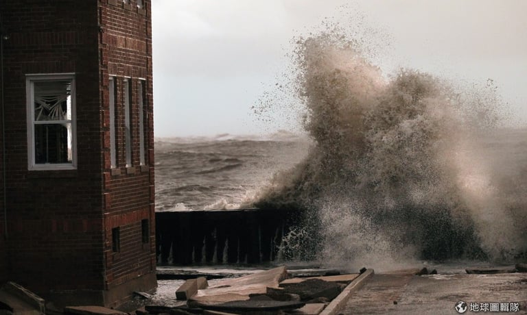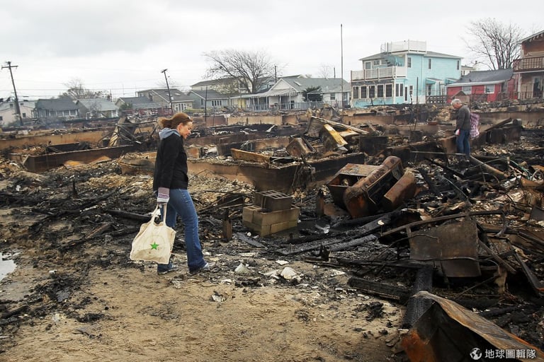 紐澤西海岸旁的公寓,在颶風帶來的大量風雨中顯得岌岌可危。圖片來源:Mario Tama/Getty Images