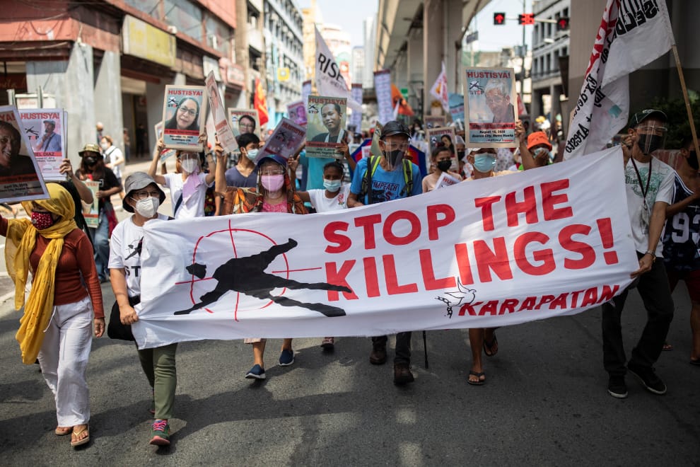 在馬尼拉街頭,適逢菲律賓總統杜特蒂(Rodrigo Duterte)任期最後一年,大批民眾一路遊行到總統府馬拉坎南宮(Malacanang Palace),要求當局停止法外處決,不要再未審就殺人,讓許多無辜民眾枉死。