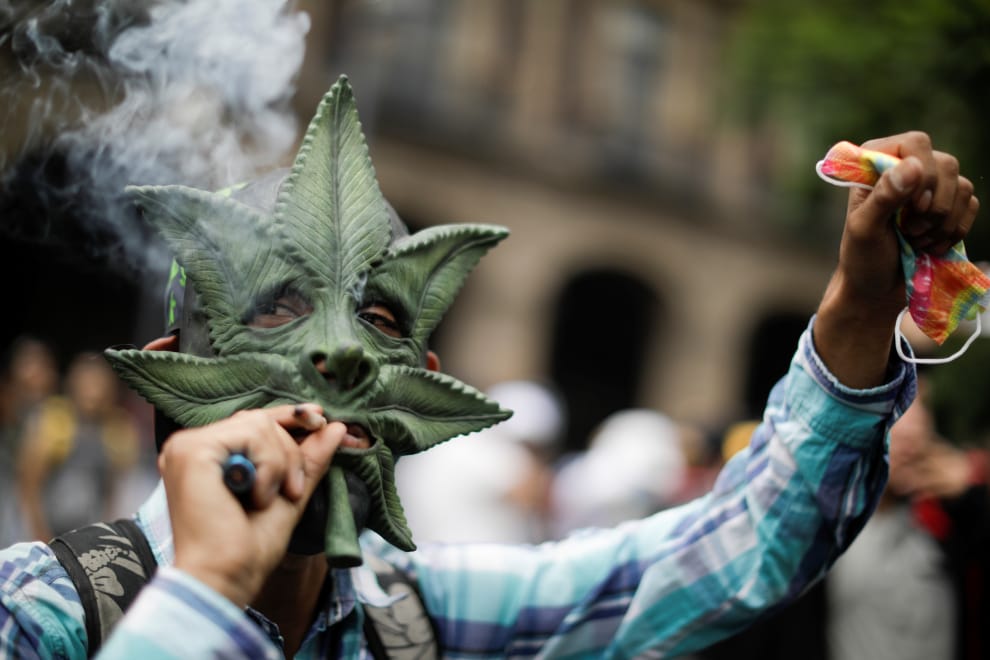 上月 28號,墨西哥最高法院裁定將娛樂用大麻除罪化。而在本月 3號,許多民眾因此走上墨西哥城(Mexico City)慶祝這項結果,照片中戴著大麻面具、正在吸菸的男子正是其中的一份子。