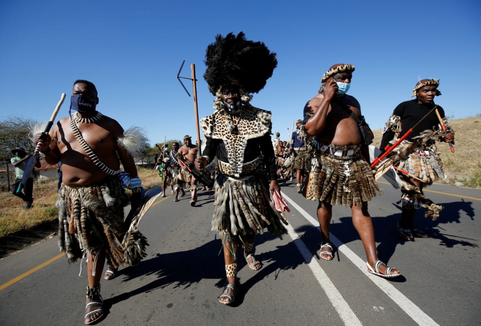 在這張攝於 3號的照片,祖瑪的支持者正準備步行到他位於城鎮恩坎德拉(Nkandla)的家,打算在他家外頭築起人牆,阻止警方前來逮捕祖瑪。