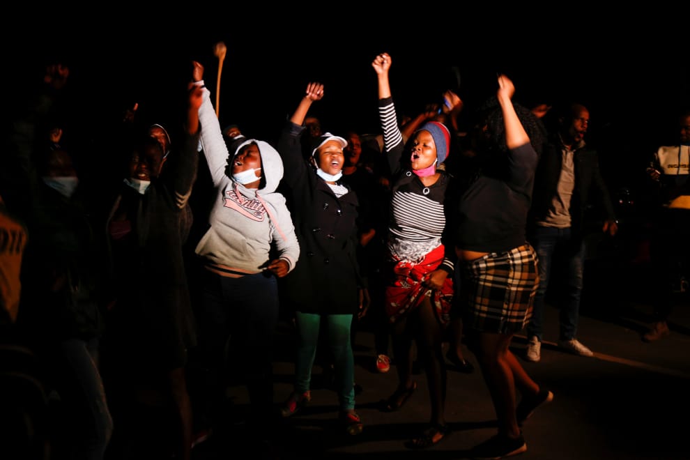在誇祖魯-納塔爾省(Kwa-Zulu Natal province)城鎮恩坎德拉(Nkandla),許多民眾來到前總統祖瑪(Jacob Zuma)的私宅外頭,表達對他的支持。