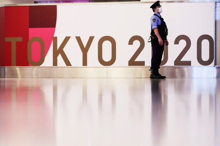在東京的羽田國際機場,一名警察正站在空蕩蕩的大廳中。在這天,國際奧運委員會(IOC)主席巴赫(Thomas Bach)搭機抵達了日本,準備迎接在本月 23號正式展開的東京奧運。