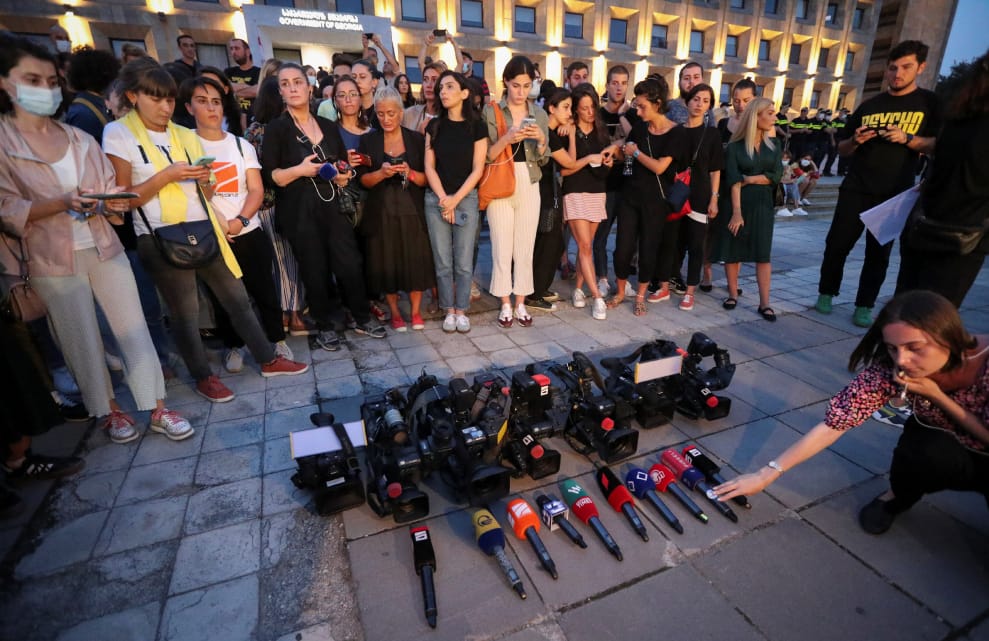 在首都提比里斯(Tbilisi)的喬治亞政府辦公室外,可以看到媒體同業紛紛放下攝影機和麥克風,悼念在採訪中過世的Pirveli TV攝影記者拉什卡拉瓦(Alexander Lashkarava)。