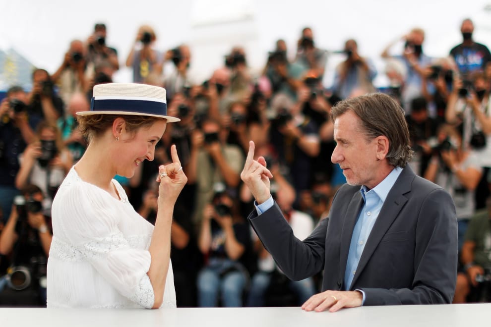 在第 74屆的法國坎城影展上,主演法國電影《伯格曼島》(Bergman Island)的演員維琪克雷普(Vicky Krieps,左)和提姆羅斯(Tim Roth,右)互相比出了中指,也暗喻了兩人在片中的關係。
