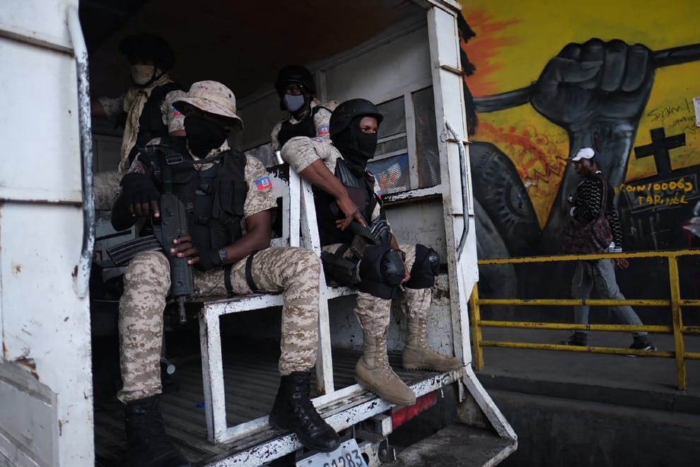 在海地總統摩依士(Jovenel Moise)遭暗殺後,警方在首都太子港巡邏。