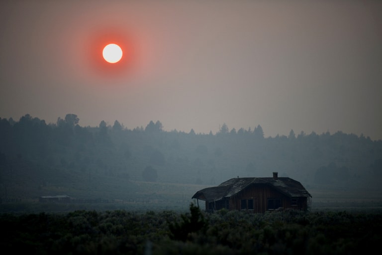 在遭到布迪萊格大火(Bootleg Fire)襲擊的奧勒岡州,可以看到濃煙讓懸在廢棄農舍上的太陽更加鮮紅。