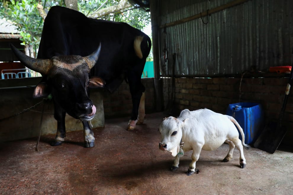 在首都達卡外圍的納比納加爾市(Nabinagar),可以看到毛色雪白的米你牛拉尼(Rani),牠只有 51公分高、66公分長、26公斤重,牠的主人已經為牠申請金氏世界紀錄,希望可以讓牠被認證為全世界體型最小的牛。