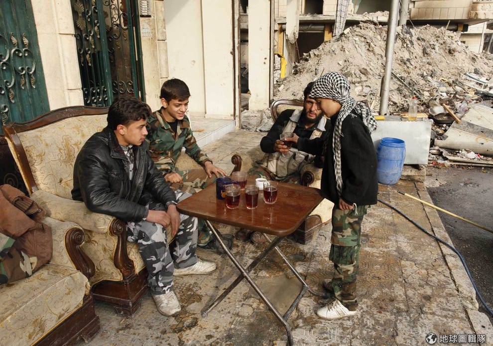 11月的哈珊(Hasan)是反政府的解放敘利亞軍的成員,照片中的他正在端茶給其他軍人